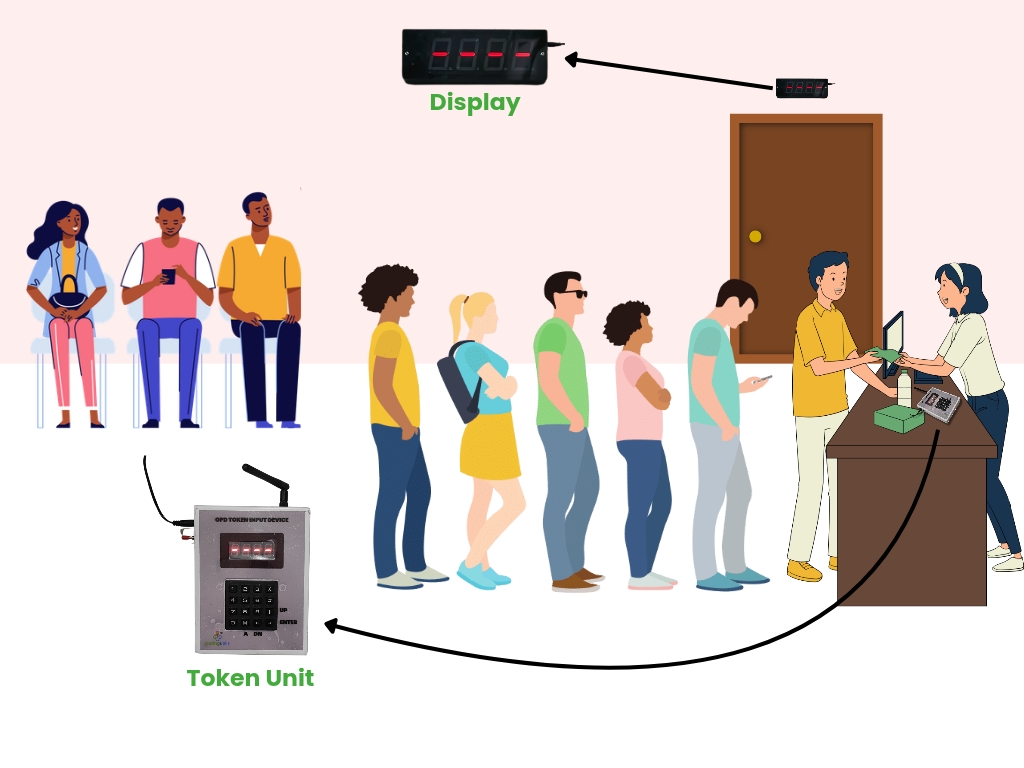 Our Token System is an efficient solution designed to streamline the patient management process in clinics, hospitals, and healthcare facilities. This system helps in organizing the flow of patients by displaying token numbers, ensuring a smooth and orderly experience for both patients and healthcare providers. By simply pressing a button from inside the consultation room, doctors can call the next patient, reducing confusion and wait times.